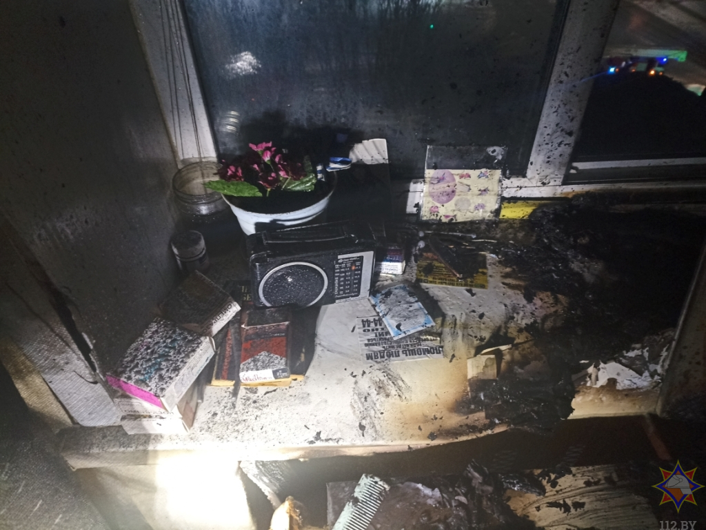 Ночной пожар произошёл в одной из квартир 12-этажного жилого дома в Гомеле. При проведении разведки работники МЧС обнаружили в задымлённом помещении мужчину и спасли его.