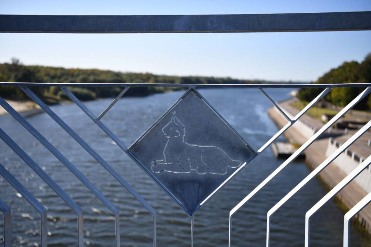 На данный момент перильное ограждение моста полностью смонтировано. Оно выполнено из оцинкованного металла с декоративными элементами, близкими сердцу каждого гомельчанина. Интересные детали станут приятным сюрпризом для жителей города.