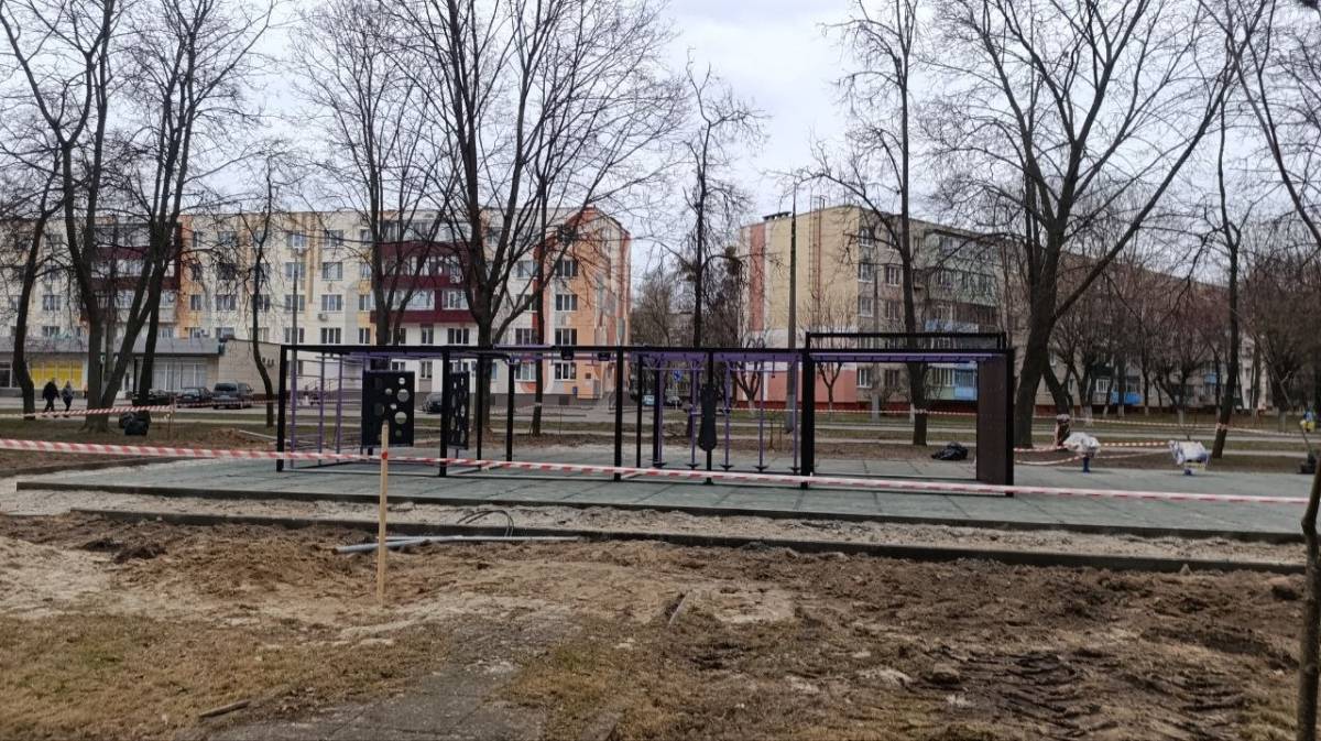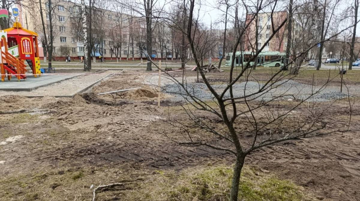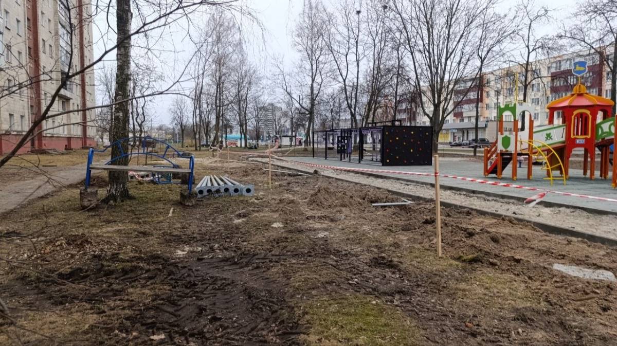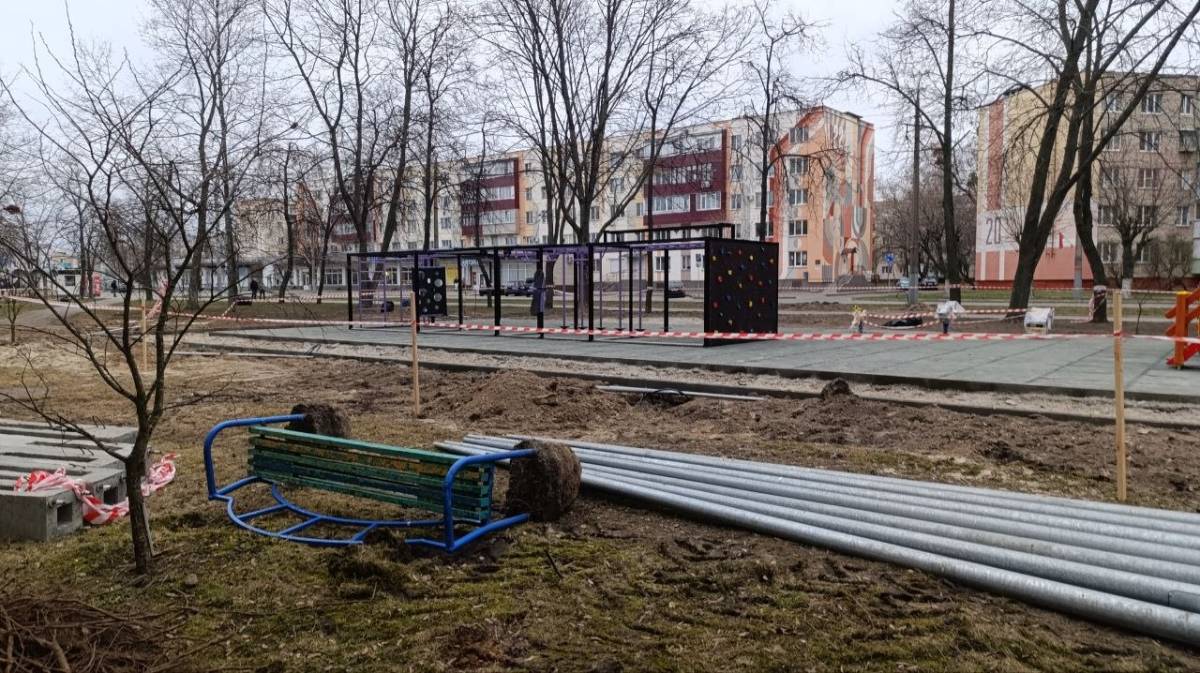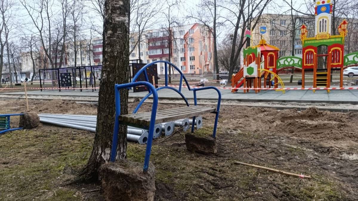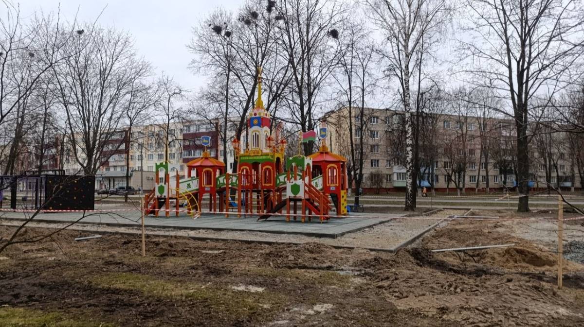 В Гомеле возобновились работы по обустройству детского городка и спортплощадки