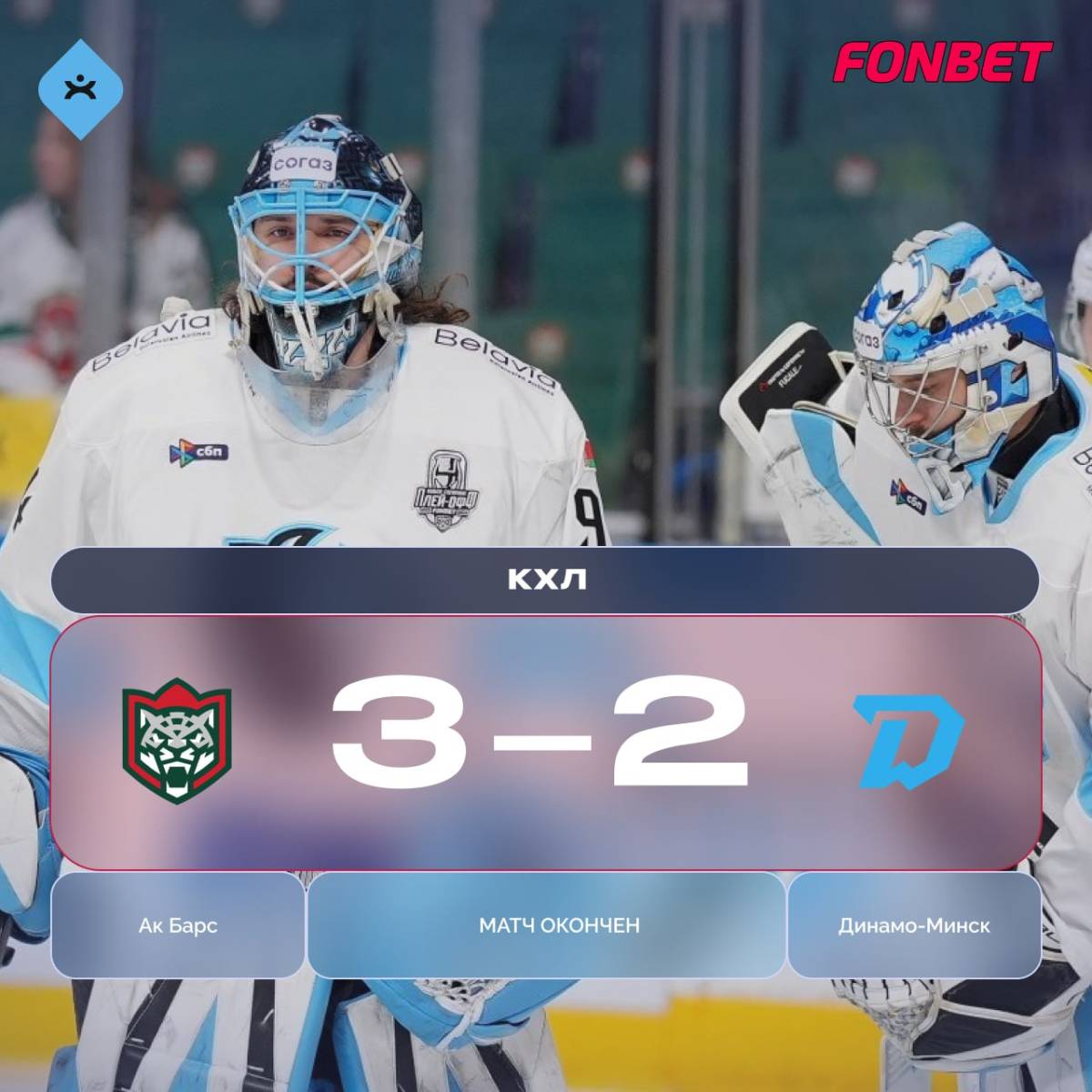 Минское «Динамо» завершило сезон в КХЛ, уступив «Ак Барсу» в четвёртом матче со счётом 2:3. Серия закончилась всухую — 0:4.